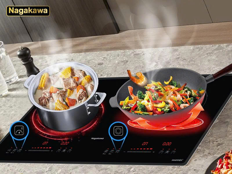Được Bộ Công Thương chứng nhận tiết kiệm năng lượng, Bếp đôi 1 điện từ 1 hồng ngoại Nagakawa NII8996 tối ưu điện năng qua 4 chế độ nấu tự động.