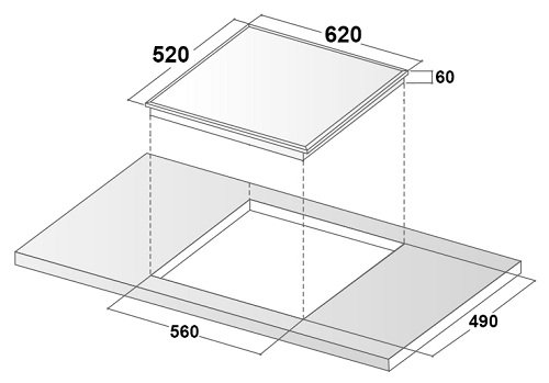 | Bếp từ lớn: 2600W, Booster: 3700W Bếp từ trung: 2100W, Booster: 3700W Bếp từ nhỏ: 2100W, Booster: 2200W Điện áp: 220-240V/ 50-60Hz Kích thước bề mặt: 620x520mm Kích thước khoét đá: 560x490mm |