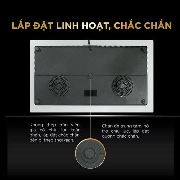 Sản phẩm có thể lắp đặt âm hoặc dương, đáp ứng đa dạng nhu cầu và không gian bếp. Thiết kế tinh tế với bo tròn 4 góc, vát cạnh sang trọng, cùng khung thép mặt dưới tràn viền chắc chắn, gia cố chịu lực toàn phần tạo được tính ổn định, bền vững khi lắp đặt và sử dụng. Vỏ nhựa cao cấp kết hợp chân đế đúc liền khối giúp bếp đứng vững, đảm bảo an toàn và độ bền cao trong quá trình sử dụng.