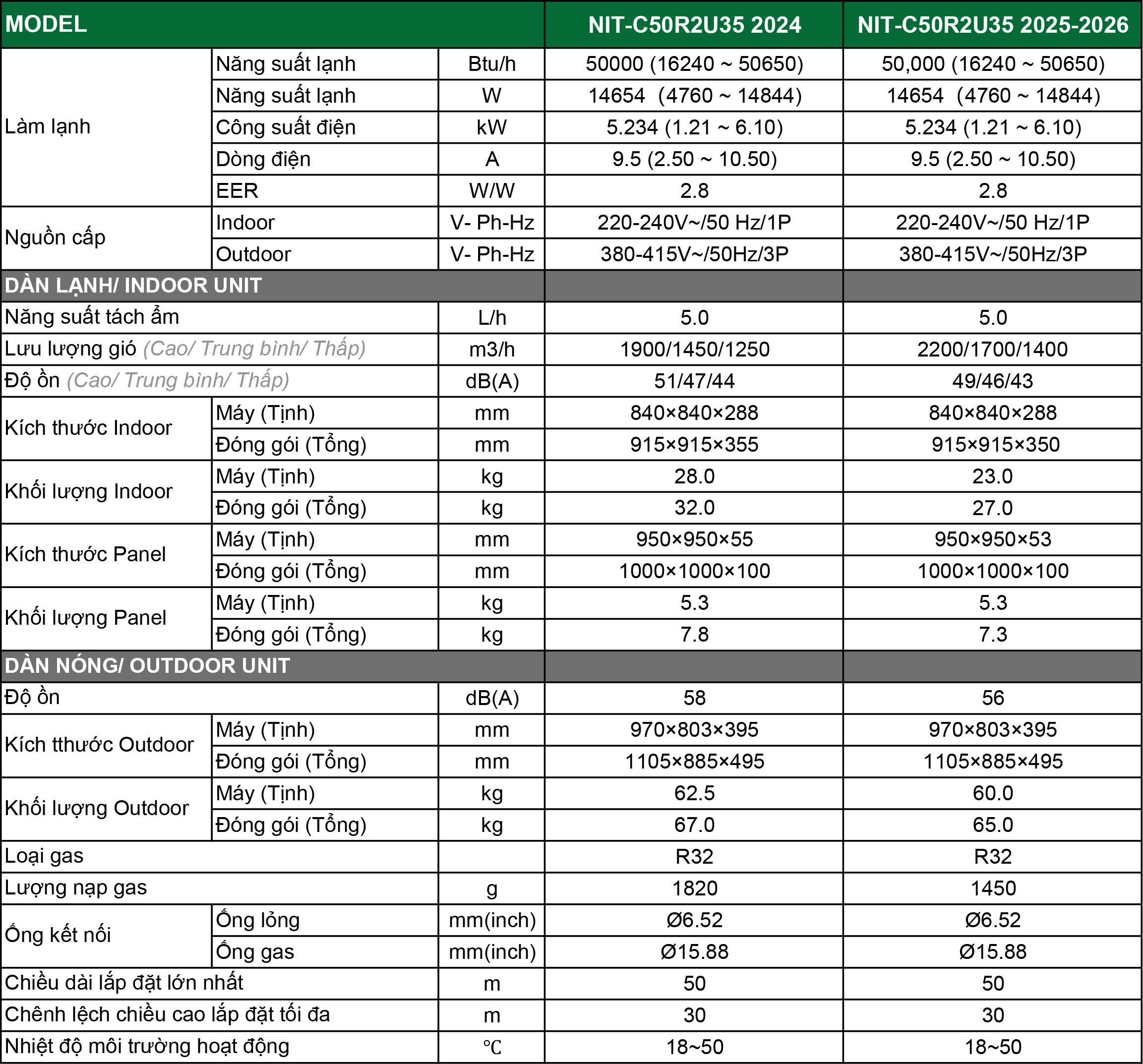 Dễ dàng trong lắp đặt và bảo dưỡng của NIT-C50R2U35 không chỉ giúp nâng cao hiệu quả sử dụng mà còn mang lại sự thuận tiện tối đa cho người dùng, góp phần tạo ra môi trường sống và làm việc thoải mái.