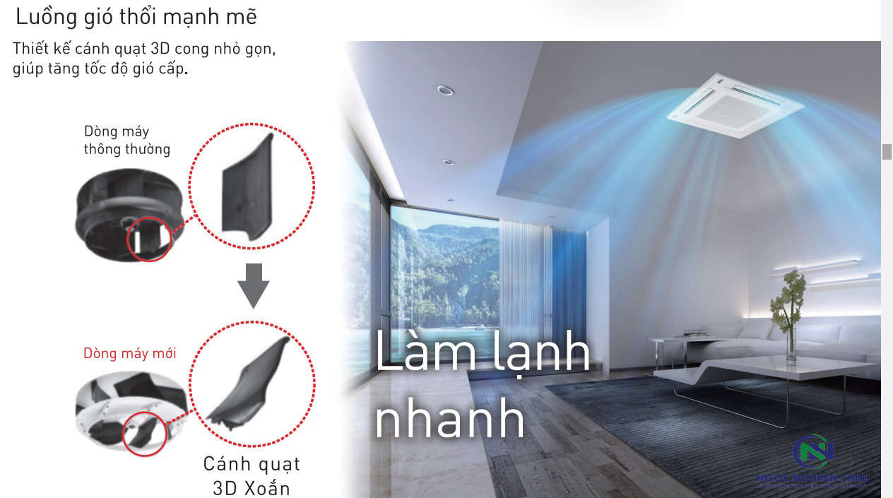 Một kiểu phân tán khí kiểu mới cho phép tăng lưu lượng luồng khí mà không tăng tốc độ gió. Có thể phân tán không khí xa hơn trước đây.