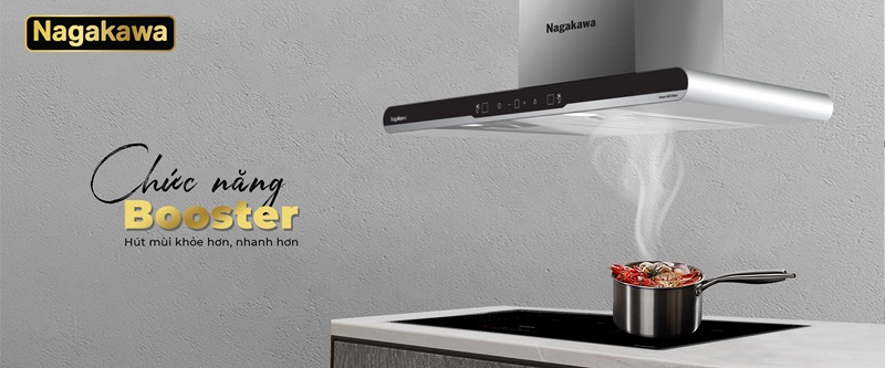 Máy hút mùi Nagakawa NKTH01M70 trang bị chức năng Booster hoạt động với công suất cực đại giúp hút mùi khỏe hơn, nhanh hơn, đảm bảo giữ cho bầu không khí khu bếp luôn thoáng mát, trong lành.