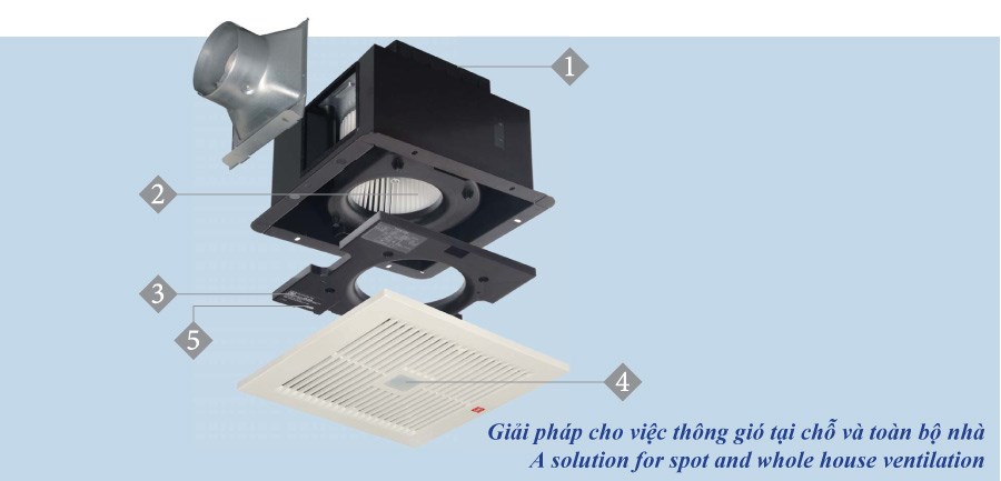Quạt thông gió được lắp đặt trên trần kết nối với ống dẫn, do đó không khí trong nhà sẽ được hút qua mái nhà hoặc tường ra bên ngoài. Vì chúng chủ yếu được gắn bên trên trần, nên nội thất trong nhà ít bị ảnh hưởng và làm xấu.