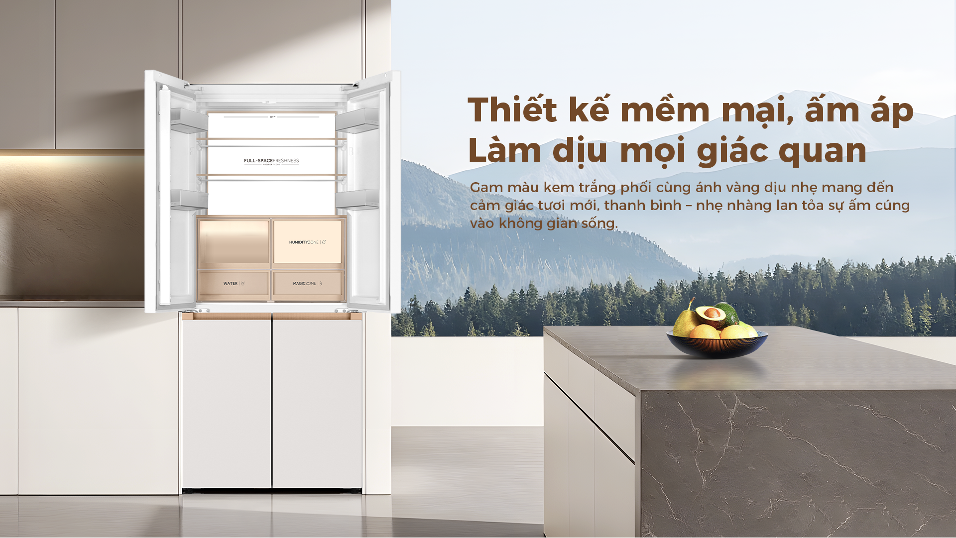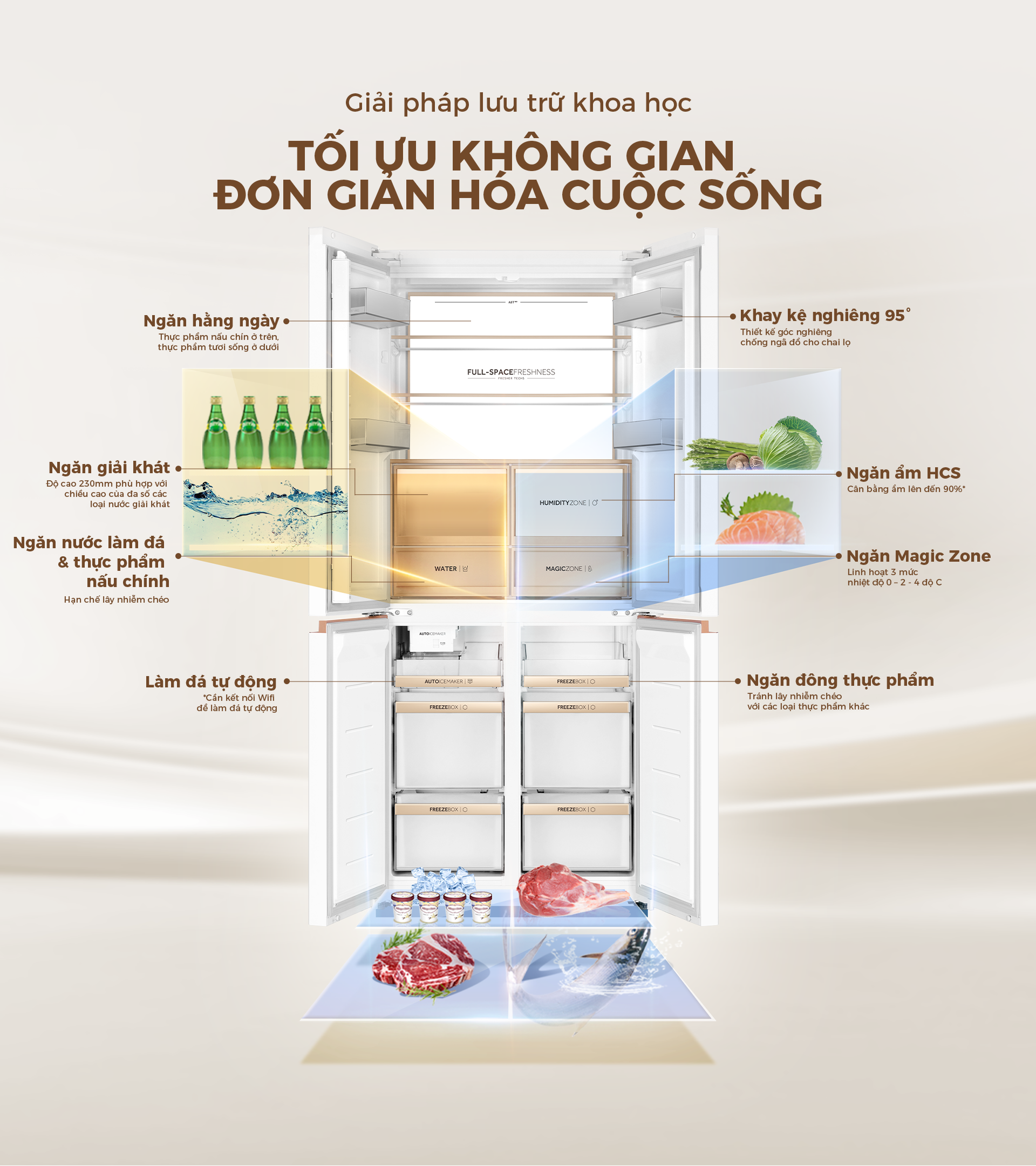 Tủ Lạnh Aqua Inverter 508 Lít AQR-MA580XA(MC)U1 sở hữu thiết kế sang trọng, mang lại vẻ hiện đại cho không gian bếp. Dung tích sử dụng 508 lít đáp ứng tốt nhu cầu bảo quản thực phẩm cho gia đình từ 4 – 5 thành viên. Tủ lạnh ứng dụng công nghệ Inverter giúp tiết kiệm điện năng tối ưu và vận hành êm ái. Điểm nổi bật của tủ là ngăn HCS cân bằng độ ẩm mức 90%, cùng công nghệ khử mùi và diệt khuẩn ABT Pro đảm bảo môi trường bảo quản trong lành.