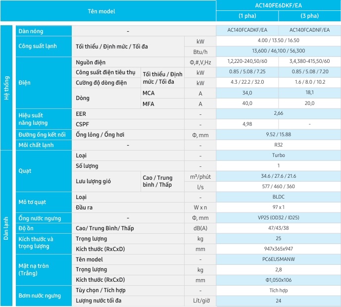 Máy lạnh Âm Trần Samsung Inverter 4 hướng WindFree™ AC140FE4DKF/EA - AC140FCADKF/EA 5Hp